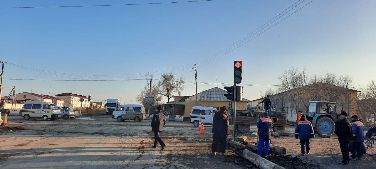 4к 922 “Гурлан ш-Эшимжирон қ” автомобиль йўлининг 1 км ва 4к 980 "Урганч-Гурлан" автойули- Сахтиён к-Гурлан ш. автомобиль йўлининг 5 км кесишмаси, чорраҳага ҳаракатни тартибга солувчи светафор қурилмасини ўрнатиш ишлари