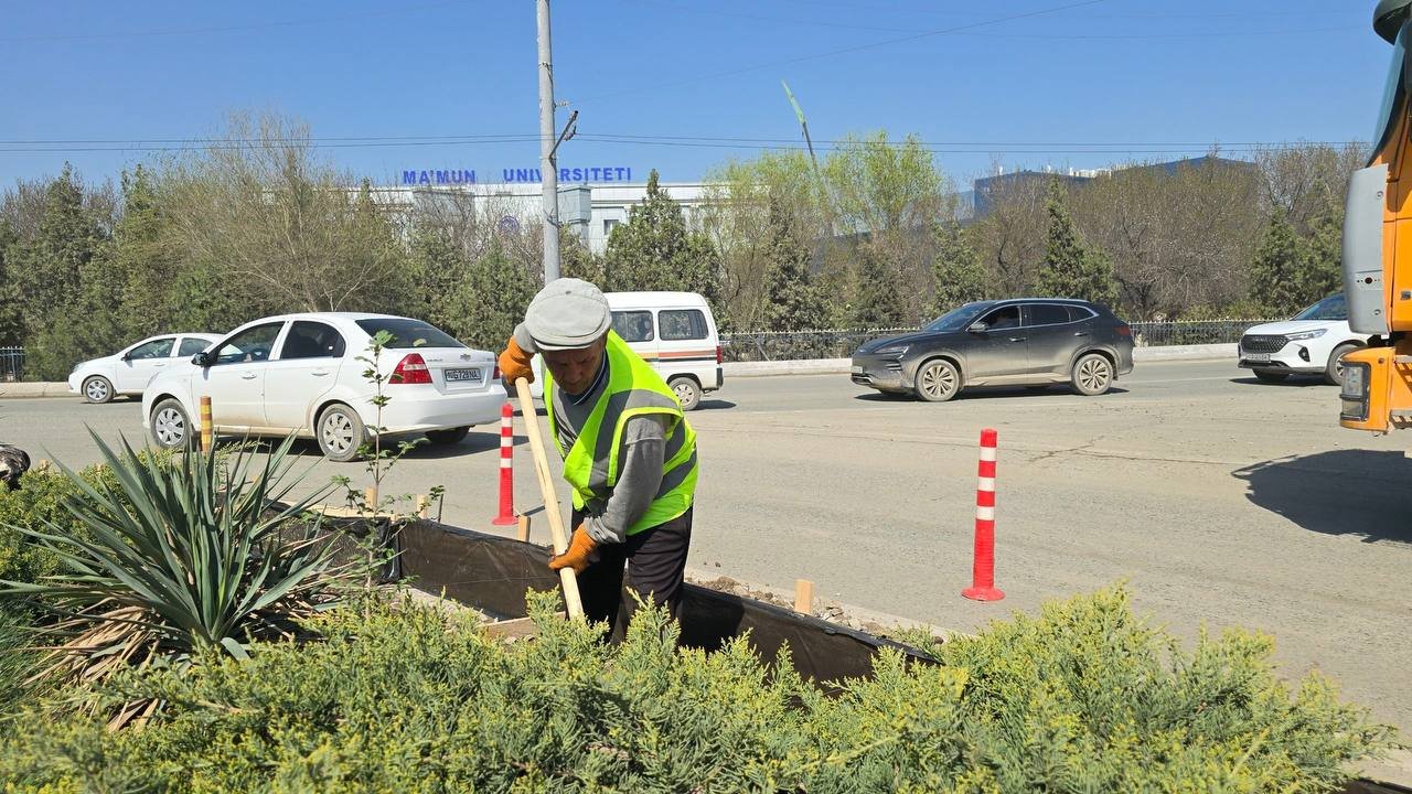 Xorazmda zamonaviy landshaft dizayni asosida D215 yo‘li obodonlashtirilmoqda